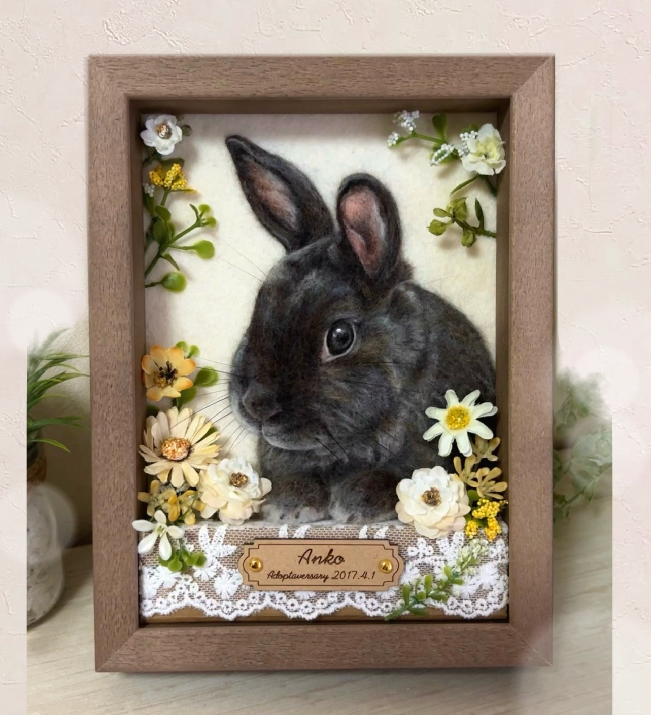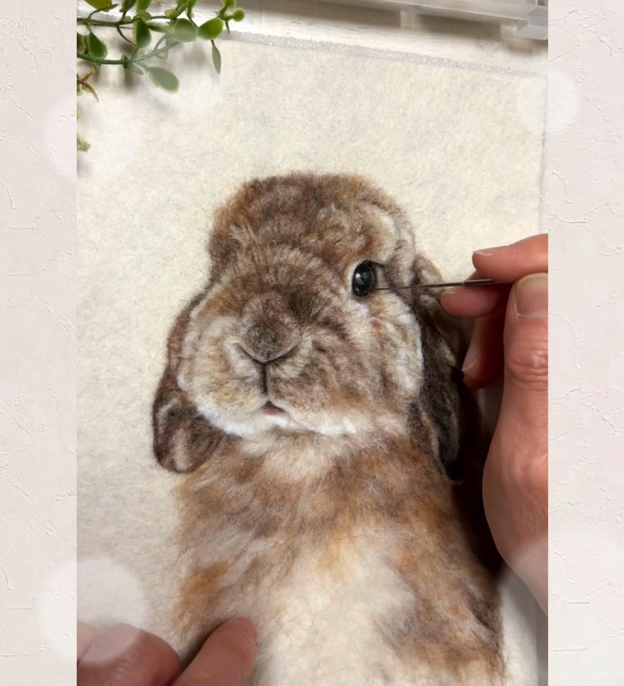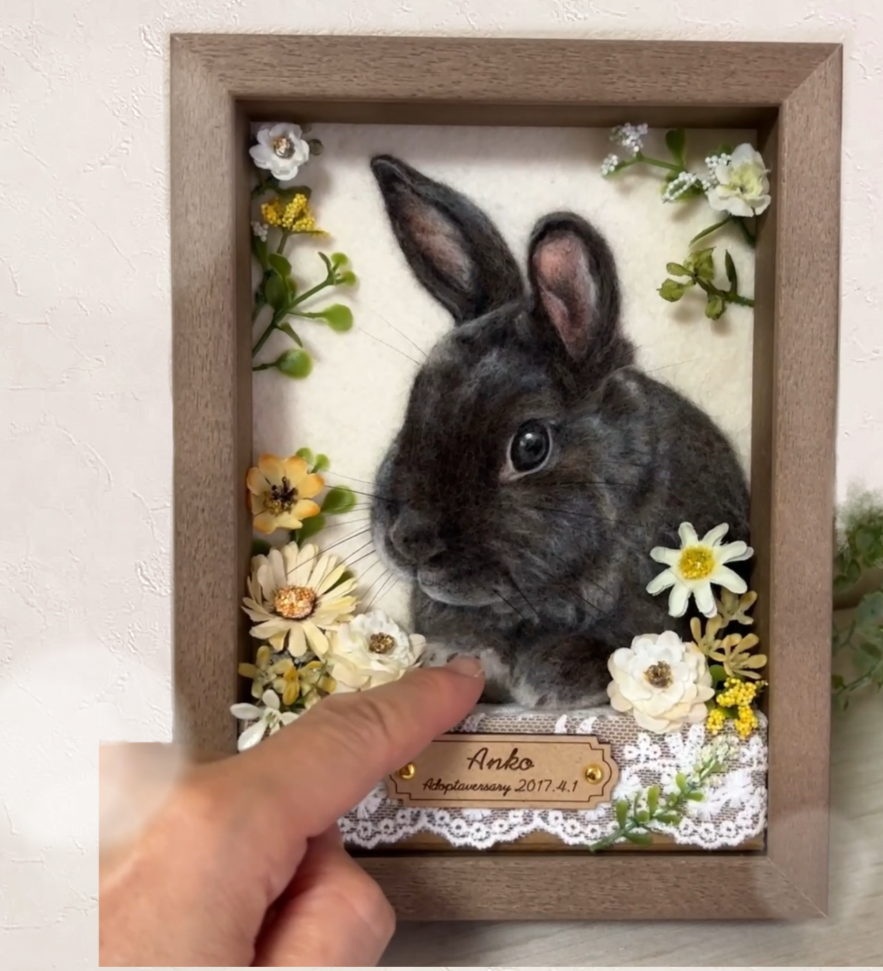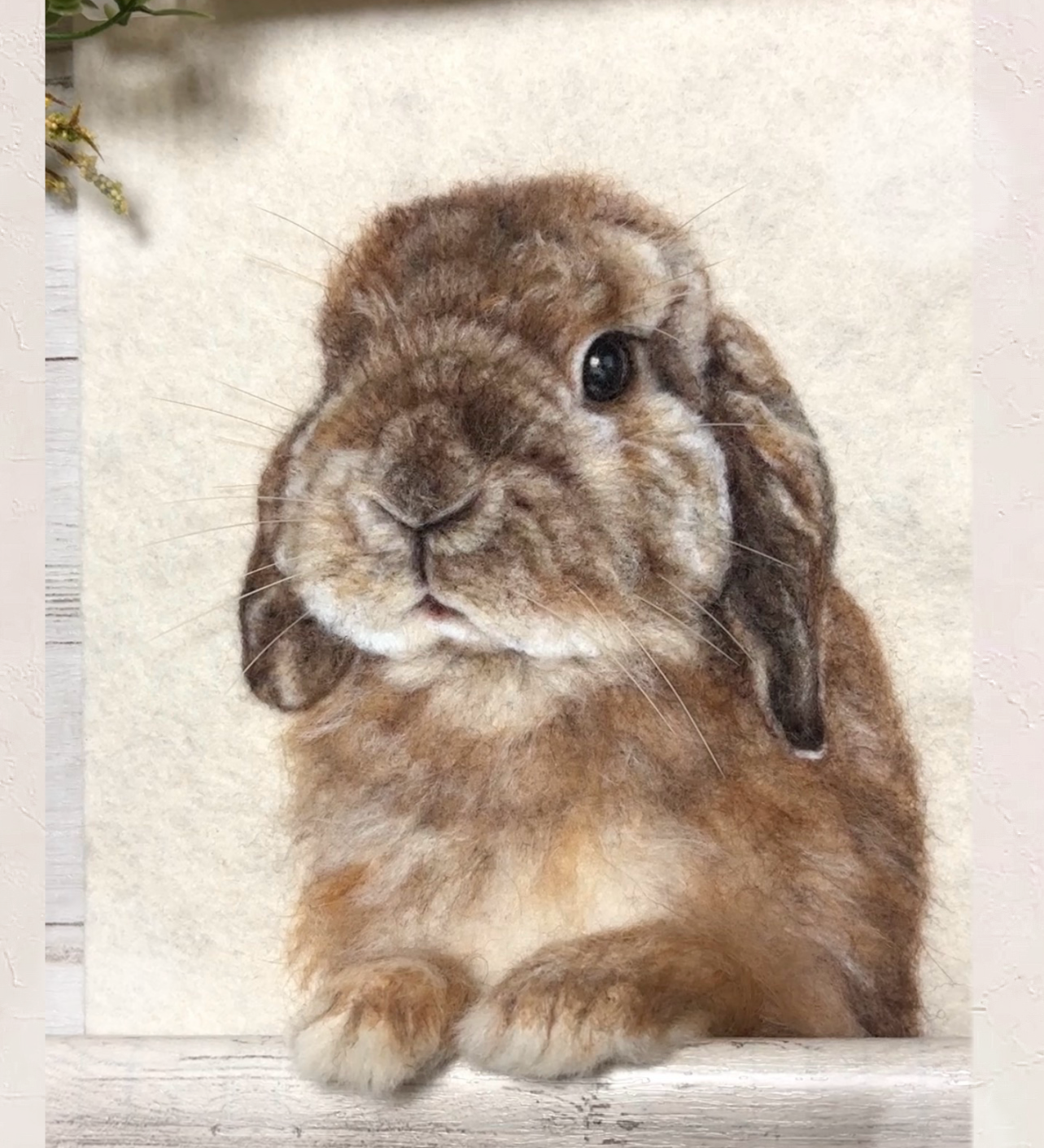 可愛らしくお洒落に飾れる 羊毛画のうさぎさんをお届けします