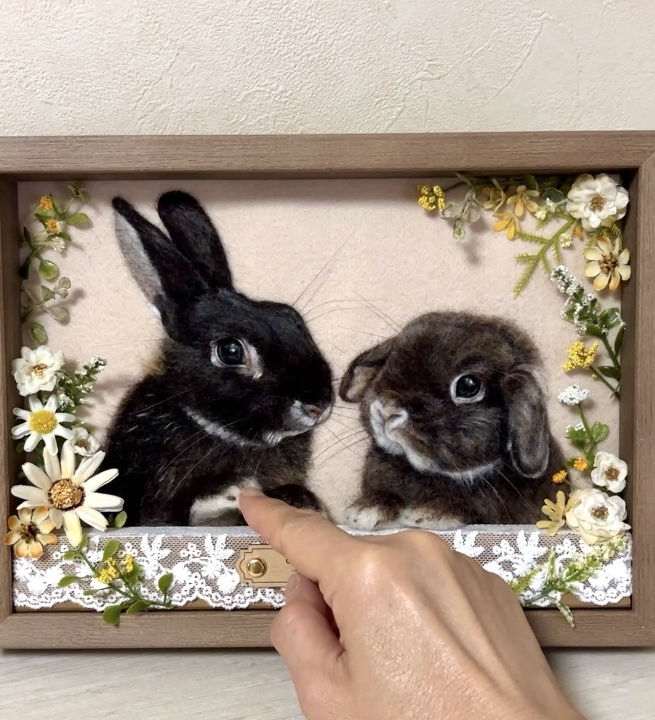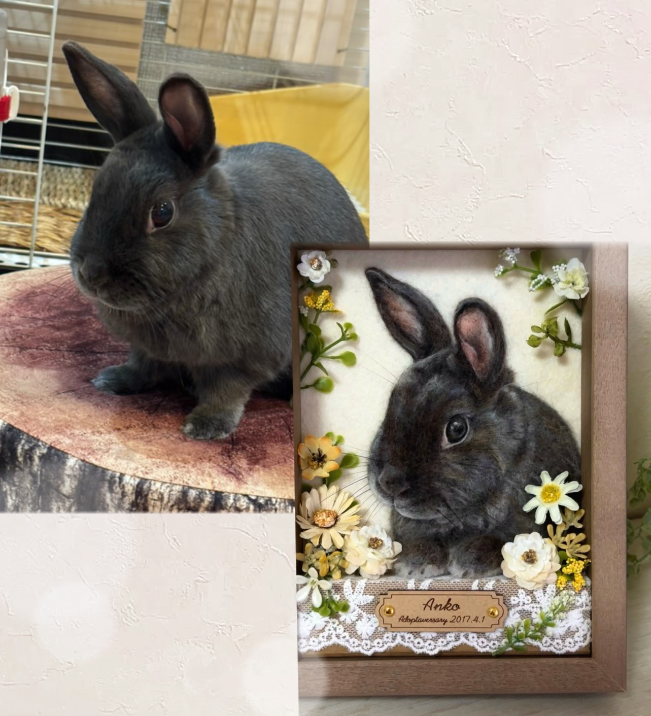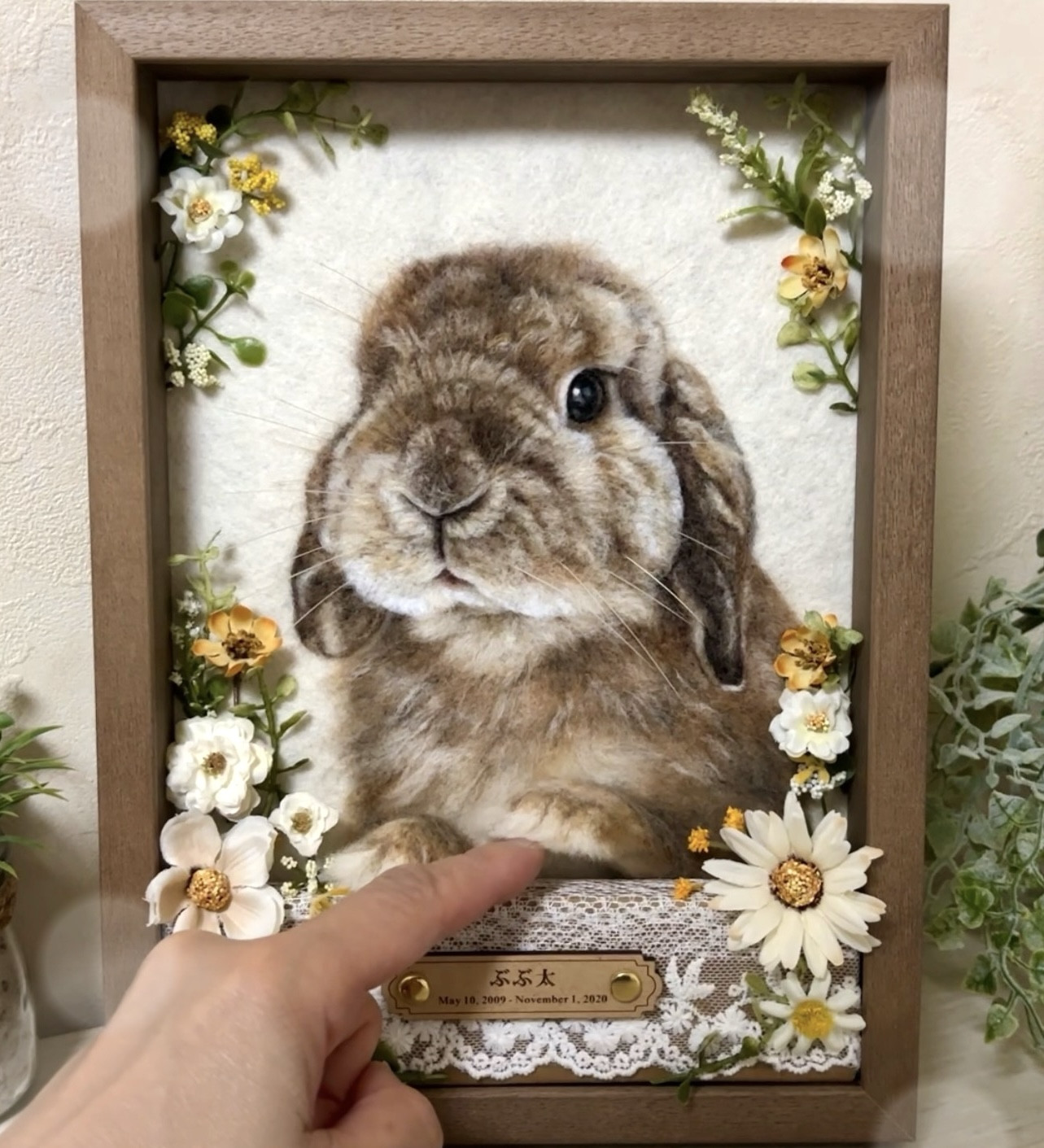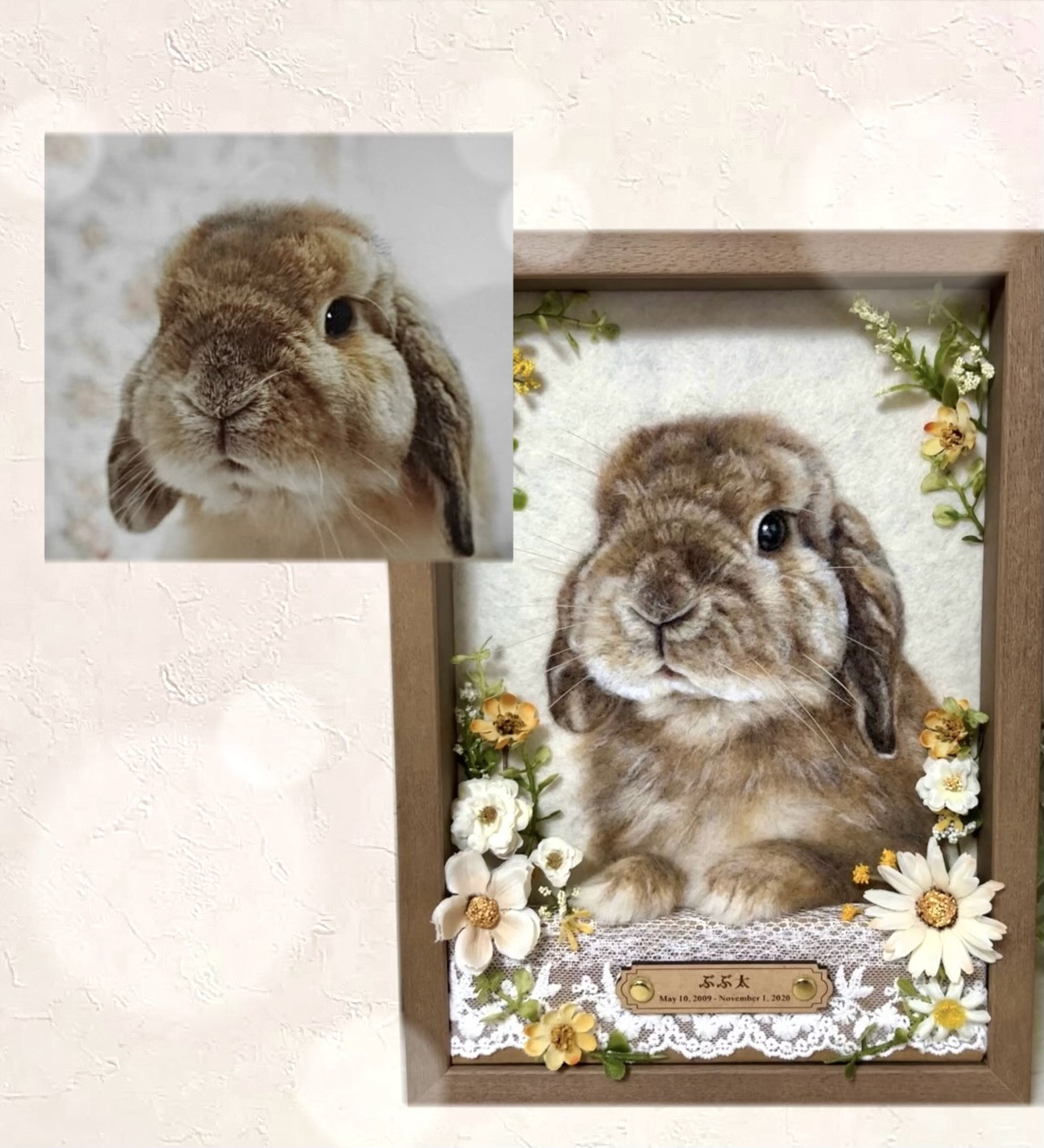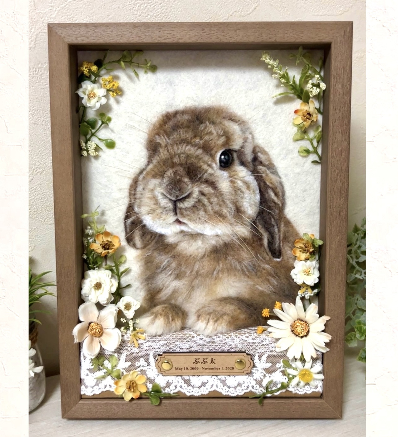 可愛らしくお洒落に飾れる 羊毛画のうさぎさんをお届けします
